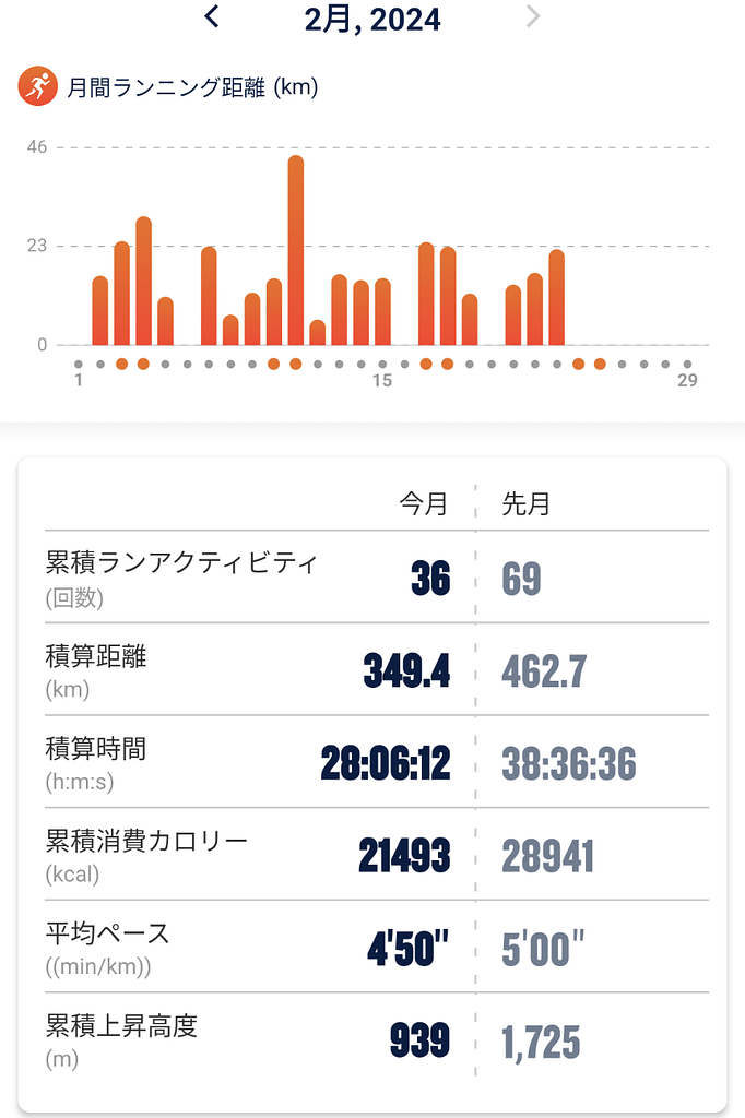 12・1月の2か月連続で怪我無く400km台を積めたのは大きな成長でした。